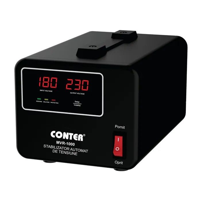 Cu o putere nominală de 600 W și o capacitate de 1000 VA, modelul Conter MVR 1000VA este potrivit pentru alimentarea echipamentelor electronice, frigiderelor, calculatoarelor, televizoarelor sau aparatelor de aer condiționat de mici dimensiuni. Dispune de protecție automată la supratensiune, întârziere la pornire și sistem de răcire eficient, garantând o durată de viață îndelungată.