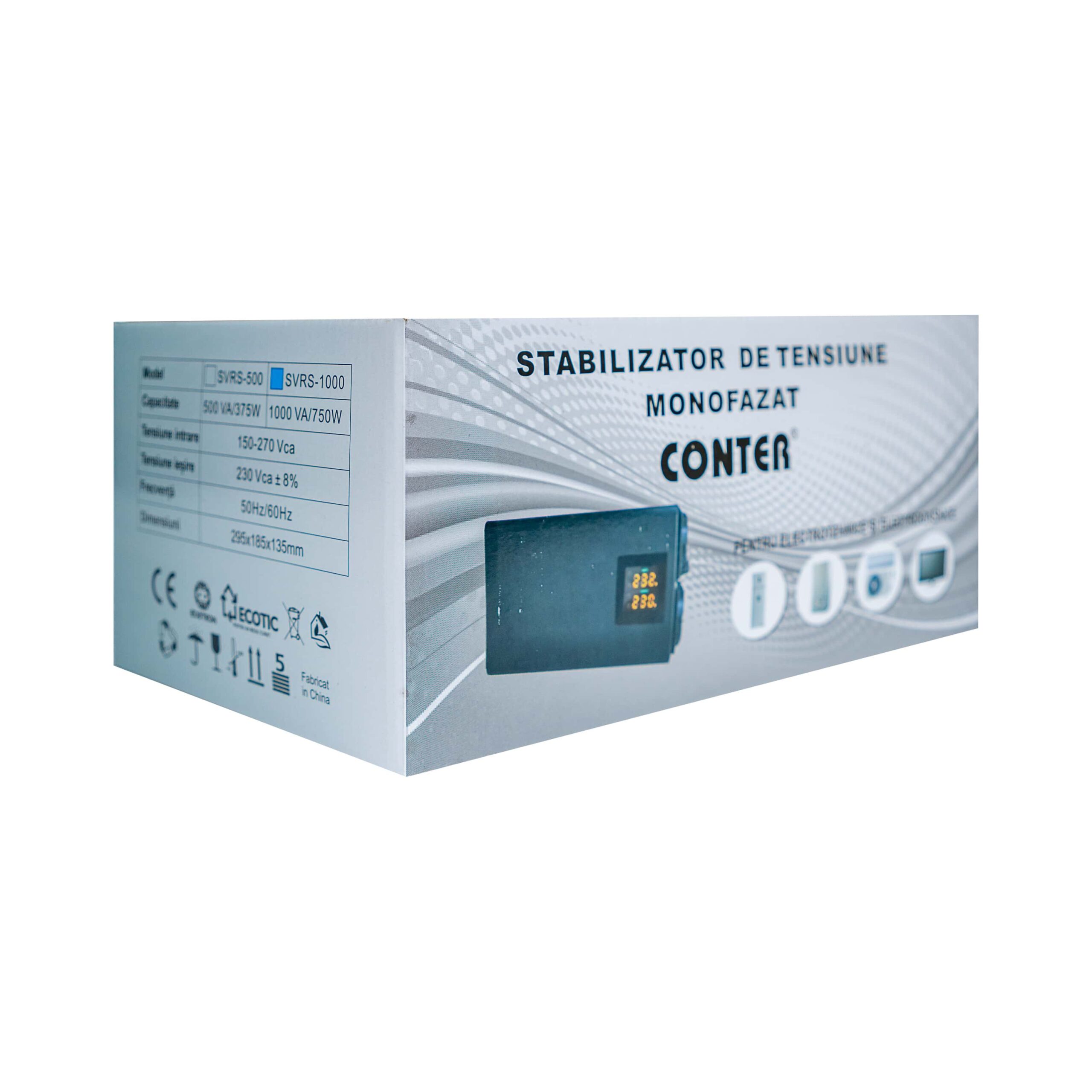 Stabilizator monofazic de tensiune SVRS-1000 Conter AVR cu releu – gama slim – este soluția ideală pentru protejarea aparaturii electronice și electrocasnice împotriva fluctuațiilor de tensiune din rețea. Proiectat cu un design compact și modern, acest stabilizator slim se integrează perfect în orice spațiu, ocupând un spațiu mic fără a compromite performanța.