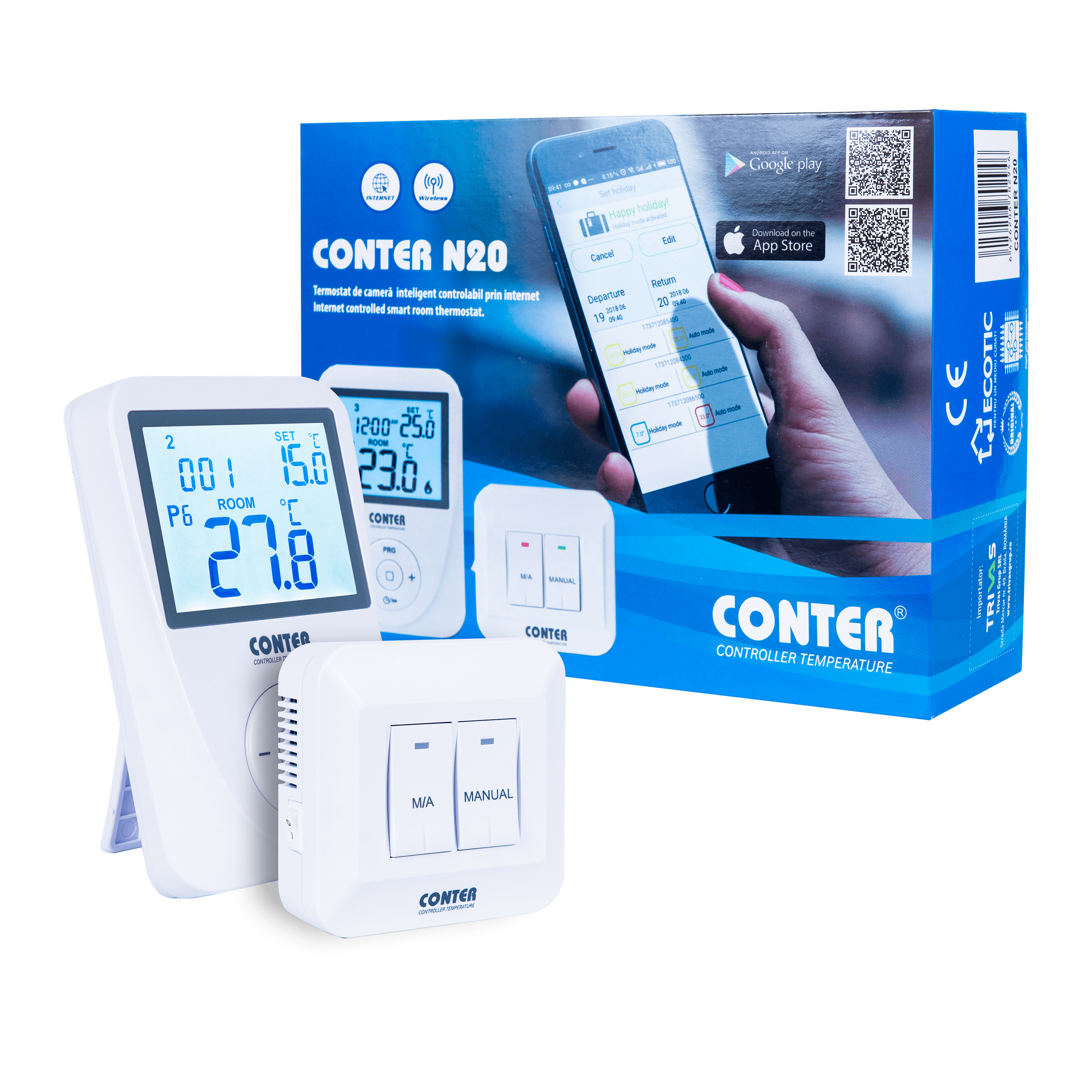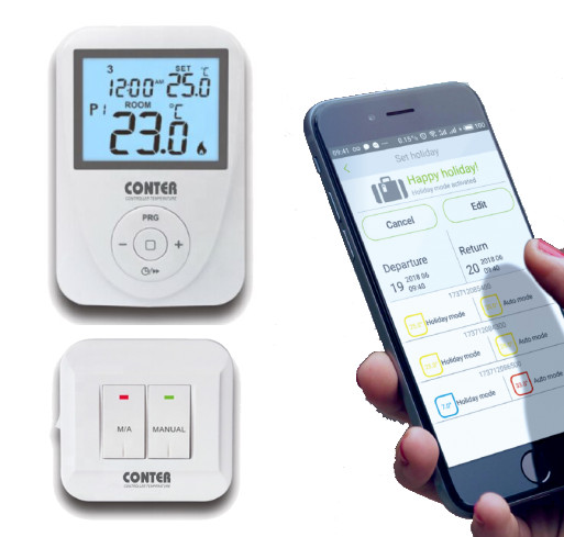 Termostat electronic smart Conter N20, controlabil prin internet, fara fir, compatibil iOS/Android